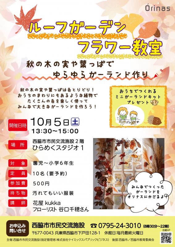 | 主催 | 西脇市市民交流施設(指定管理者:株式会社ケイミックスパブリックビジネス) |